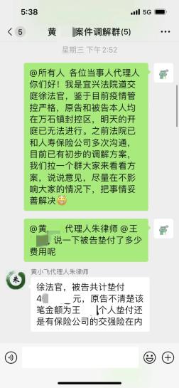 黄某因发生交通事故将王某及其车辆投保的保险公司告上法庭。案件原定于12月16日开庭,但由于原被告均位于宜兴市万石镇封控区内,按照疫情管控的要求,双方都无法到庭。了解情况后,法官组建了一个微信调解群,邀请双方当事人、代理人及保险公司代理人进群,在线核实责任分配、费用支出等具体案情,并对案件进行调解释法。在法官的不懈努力下,双方最终达成调解协议,以“不见面、零接触”的方式实现了案结事了。