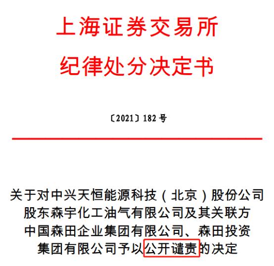 12月21日晚间,*ST中天公告,收到上交所纪律处分决定书,股东森宇化工及其关联方被公开谴责。