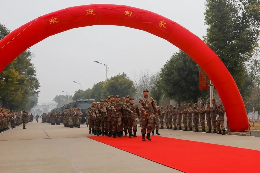 营门前,旅队官兵们整齐列队迎接。当车队缓缓驶入营区时,锣鼓声、鞭炮声、掌声即刻响起,气氛瞬间被点燃。