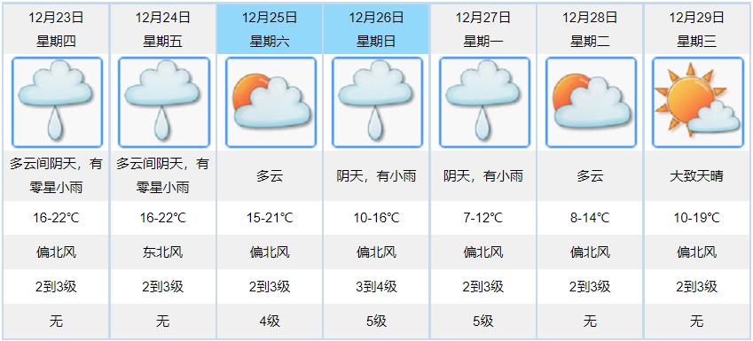 预计今天,多云,气温16到22度。早晚较冷,注意添衣保暖,谨防感冒。预计,23日至24日多云间阴天,有零星小雨,气温有所回升;25日至27日,有小雨和大风降温过程;展望28至29日,多云有阳光,气温回升。