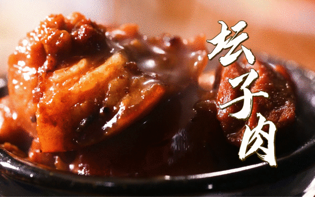 肘子是北方的叫法,江南和西南地区叫“蹄膀”。坛子肉,选料就是猪肘,先用葱姜爆香,白糖去腥,在汤料中小火慢炖而成,看似平平无奇,但味道却一点也不普通,汤汁鲜咸,色泽红亮,肉质软烂鲜香。