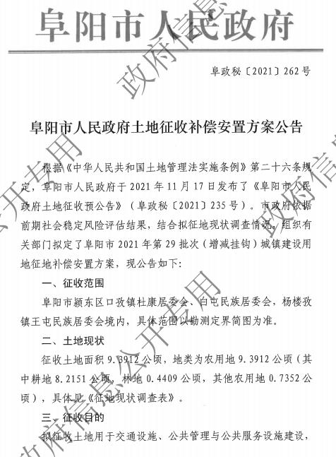 原标题:《阜阳市人民政府公告!这些地方要拆迁!》