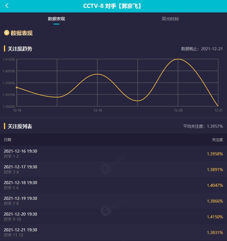 《对手》在今年3月才杀青,自12月16日开播至今,已经播出了三分之一左右的内容,收视率一路向好,稳定在1.4上下。