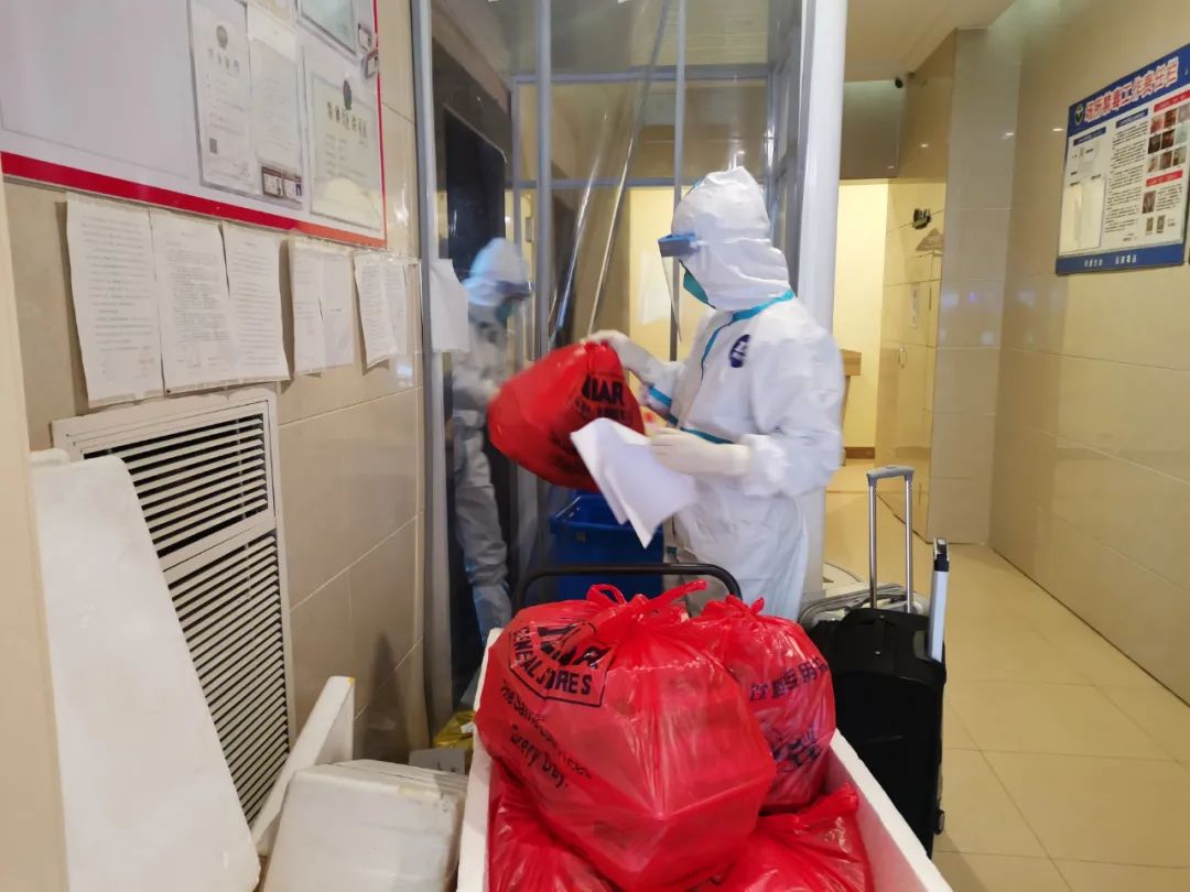 自12月5日本轮值守以来,潘伟鑫带领医护人员共计采集核酸标本约11000份,送餐约3000份,清理垃圾约1400箱,接收隔离对象172名。