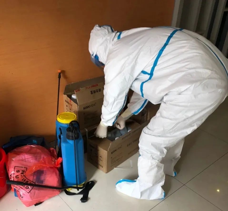 等人员入住完毕后,每天早晚一次的消杀工作就落到了体格最健壮的杨连成的肩上了。隔离点内的环境消杀是每天必做的一项重要工作。“消杀工作马虎不得,如果消杀不到位,容易带来隐患!”杨连成每天背着重达近20斤、满装消杀药水的喷雾器,从一楼到六楼,从楼梯到房间,不放过任何一个角落,几个回合下来,即便是防护服里穿着短袖,他还是被汗水浸湿。