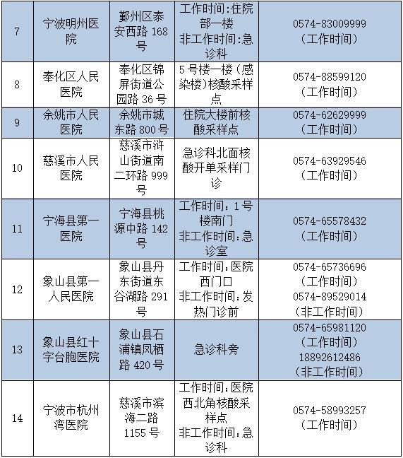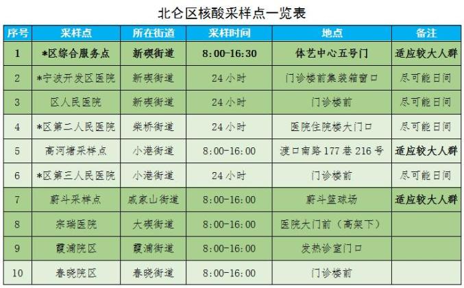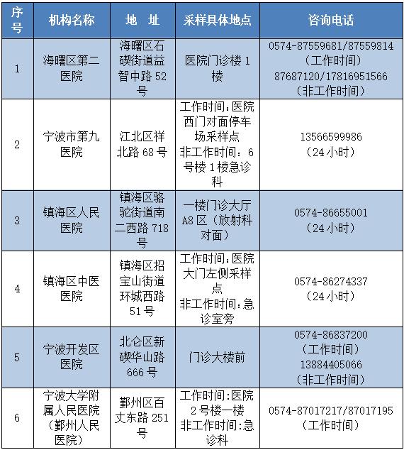 宁波市24小时核酸采样检测点有哪些?