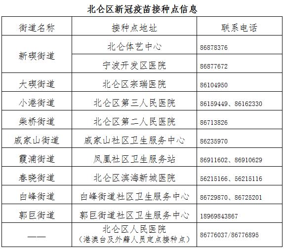 宁波市新冠疫苗接种预约与接种点清单