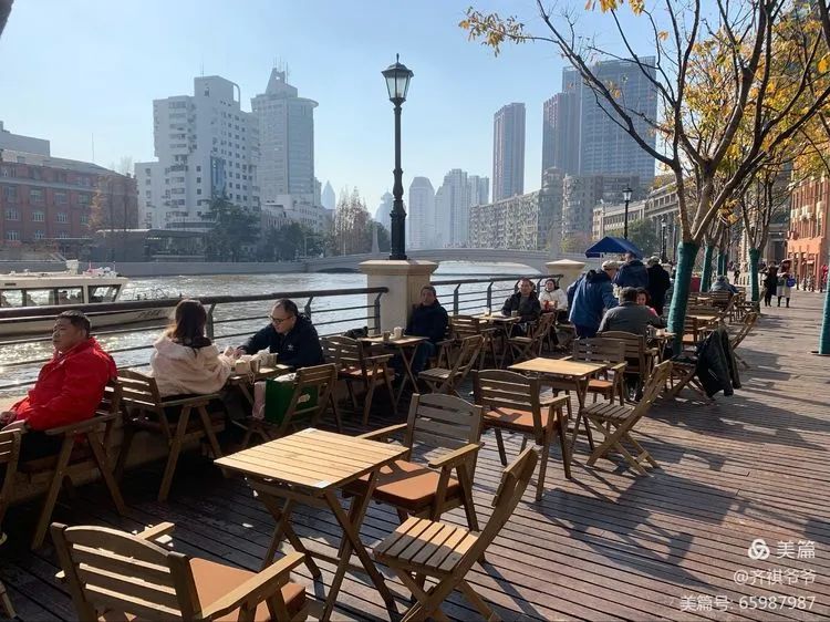 沿岸放了一些桌椅,卖些咖啡、水果、点心,方便游人休闲聊天。