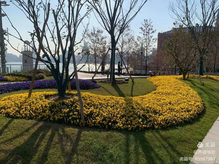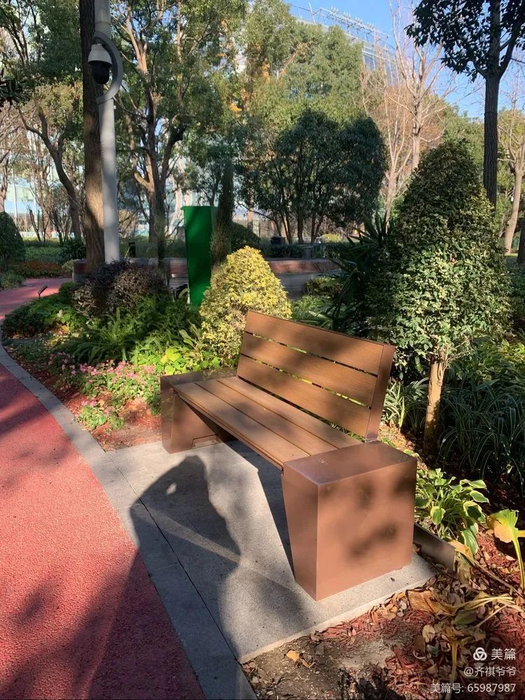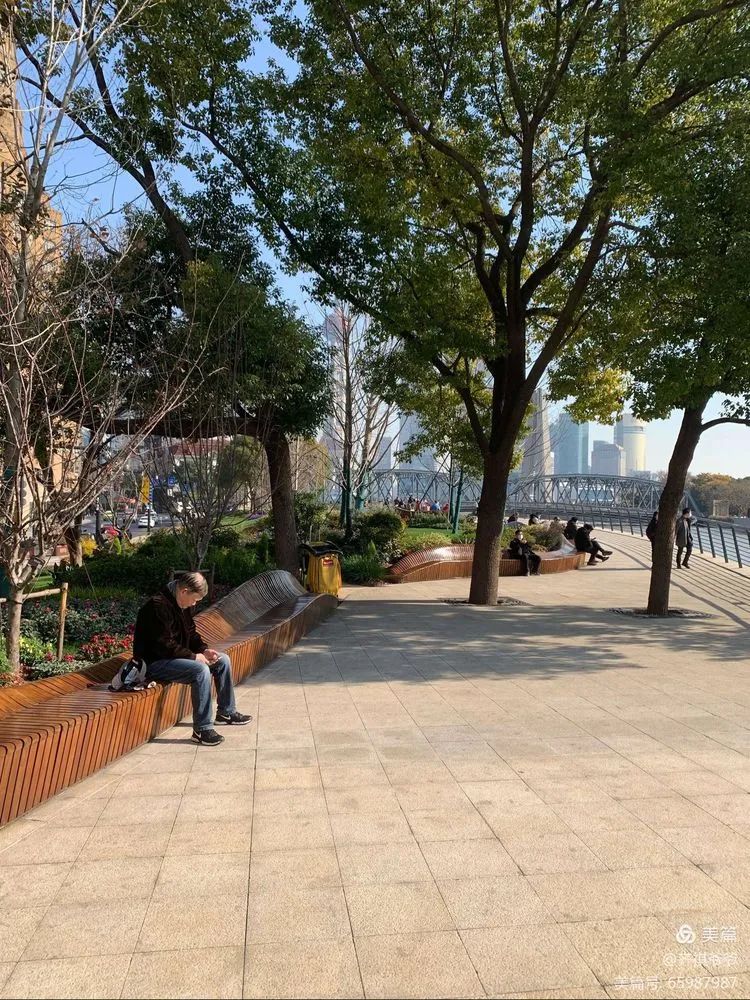 沿岸设计了许多供游人休息的长椅,造型别致,很好。