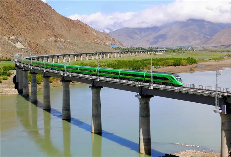 2021年6月25日,拉萨至林芝铁路开通运营。经过6年多的建设,来自五湖四海的建设者不畏困难、艰苦奋斗,攻克高原铁路多项难题,终于建成西藏首条电气化铁路,“世界屋脊”进入“复兴号”时代。