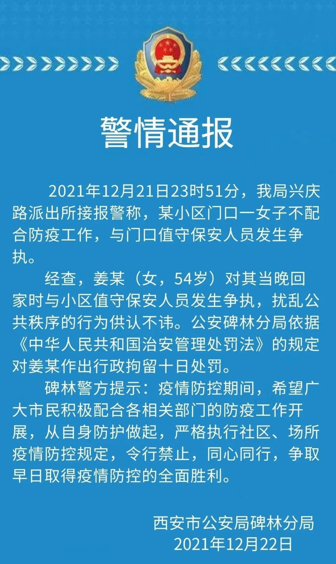 6)西安一女子不配合防疫,叫嚣“我不是平民百姓,我美国待七年了”,警方22日通报:行拘十日。西交大辟谣:不是交大职工。