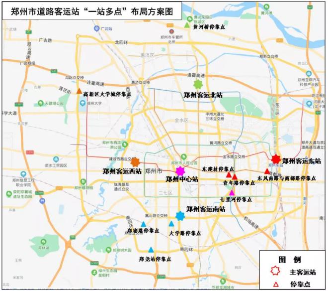 1)郑州将建9个汽车客运站停靠点。其中,郑州中心站1个,郑州客运南站3个,郑州客运东站3个,郑州客运北站1个,郑州客运西站1个。以后坐长途汽车就像“坐公交”一样,可选择就近上车。