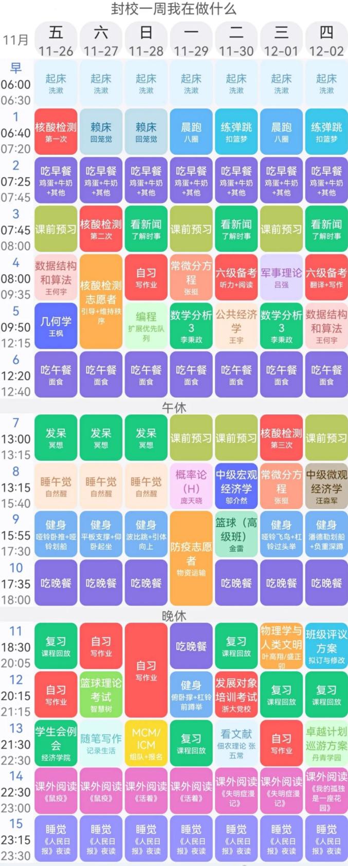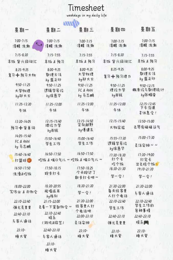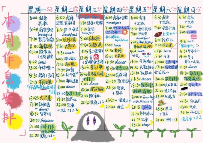 原标题:《高校学霸的这些作息表,细节满分......》