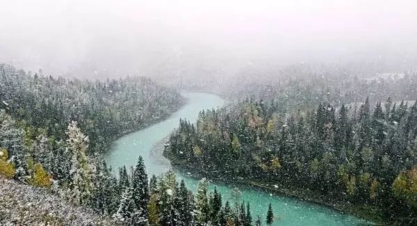 喀纳斯的河水在这里划出的是世间最美妙的一道弧线,即便是在冬季,这道弧线依然最为抢眼,像国画大师自然而又夸张的神来之笔。