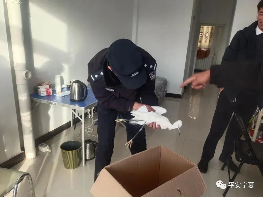 12月20日上午,青铜峡市公安局森林派出所接辖区群众报警称:在青铜峡市瞿靖镇尚桥村六队叶甘公路北侧发现一只“白色大鸟”、无法飞行,可能受伤了。