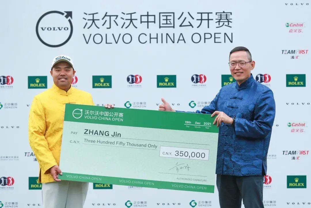 经过激烈比赛,26岁的张进问鼎赛事冠军,拿到个人第二个职业冠军头衔。张进也成为沃尔沃中国公开赛历史上第六位中国冠军。赛后,沃尔沃汽车集团全球高级副总裁、沃尔沃汽车亚太区总裁兼CEO袁小林为张进颁发了35万人民币的奖金支票。今年沃尔沃中国公开赛的奖金总计人民币200万元,冠军还同时可获得DP世界巡回赛2022赛季参赛资格。