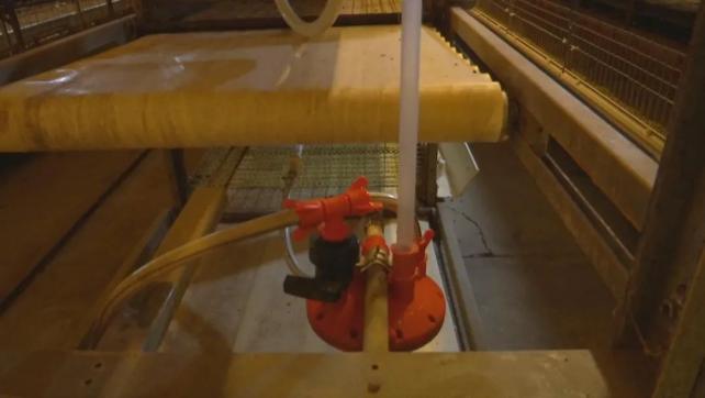 给小鸭子们喂的水、饲料、兽药都是经过有关部门检测后使用的。料槽、冲粪,都是全自动化。