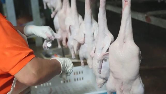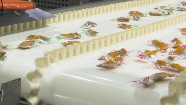 “目前,今年休闲食品在一个亿的年销售收入,这无骨鸭掌在天猫上有三千万的销售收入。我们企业原来是做屠宰加工,经过转型升级,我们企业占据了肉鸭屠宰优势,自己进行深加工,再销往全国各地。”沂南县某食品有限公司负责人介绍。
