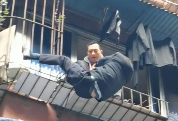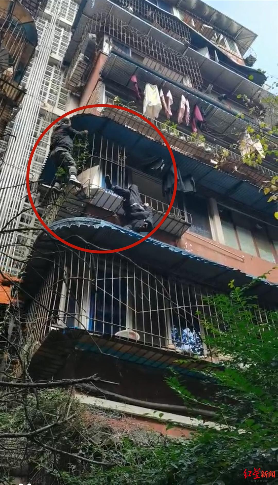 “男子爬水管10分钟救下3楼倒挂老人”的视频