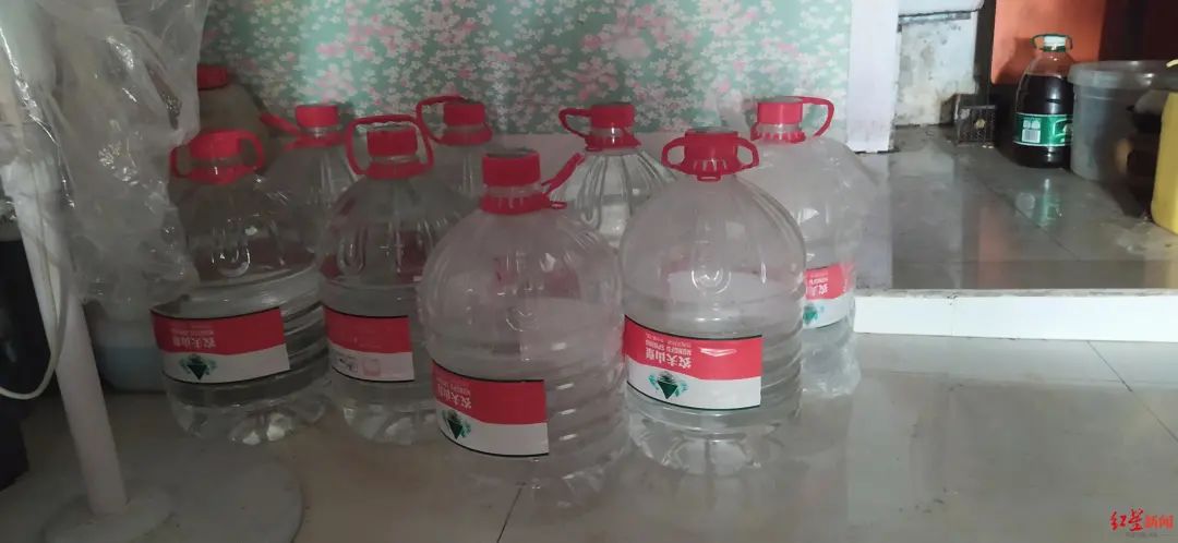 一家餐馆的店主告诉红星新闻记者,每一次接水都要拿着12升甚至更大规格的水桶接水,人力有限,每一次只能提两桶,来回跑三趟才能储备到一定量的用水。