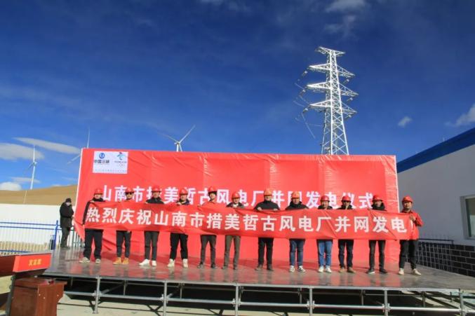 中国安能三局重庆公司主要承接了本项目二期风力发电机土建施工及升压站建筑及安装任务,自开工以来,项目部人员充分发挥“水电铁军、敢打必胜”的精神,克服高原环境带来的不良影响以及施工难度大等困难,狠抓每一个施工环节,严密组织,精心部署,经项目全体人员不懈努力以及公司领导的帮助扶持,最终啃下这块高原上的“硬骨头”。12月20日,110KV升压站正式受电,12月22日,三台风力发电机组顺利并网并开始试运行,这也标志着西藏山南措美县哲古分散式风电工程顺利完工。