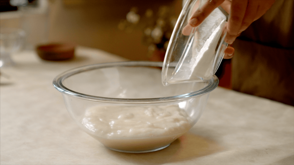 将搅拌好的鱼蓉转入一大盆内,加入40克木薯淀粉搅拌至顺滑无颗粒,鱼蓉就准备好啦。