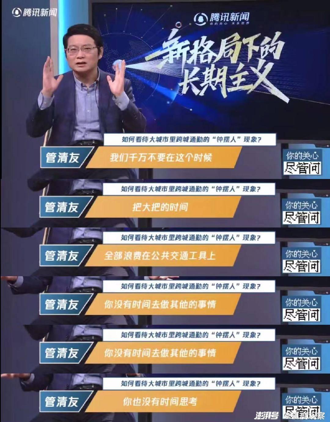 近日,经济学家管清友也给出了他对“日常通勤时间”管理的看法。他在一档节目上说,“我们上班不仅仅是为了糊口,我觉得应该调整一下,它的要害不在于你有多辛苦,而在于非常可惜的,你把大把的时间都浪费在路上,而且你很疲惫,你没有时间去做其他的事,你又没有时间思考。”