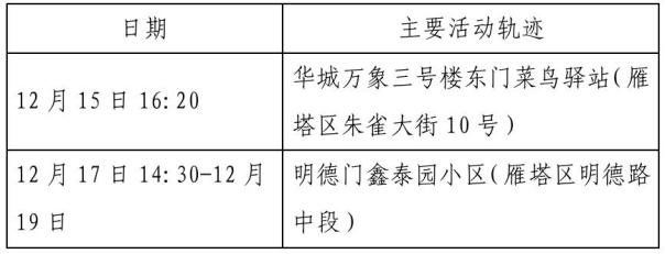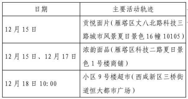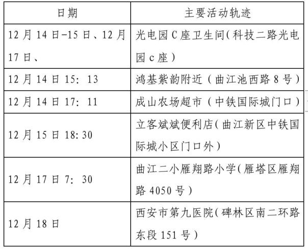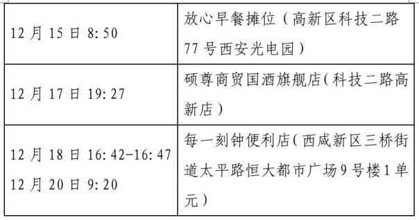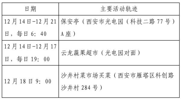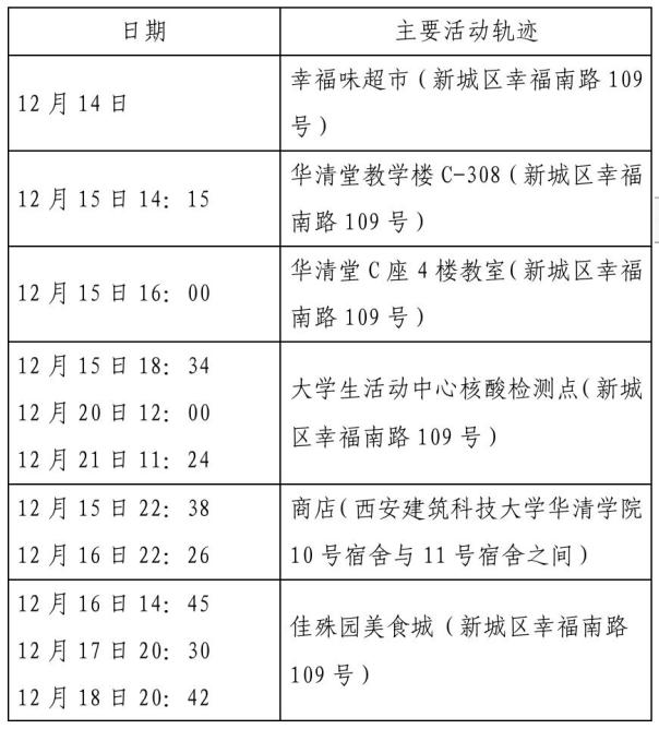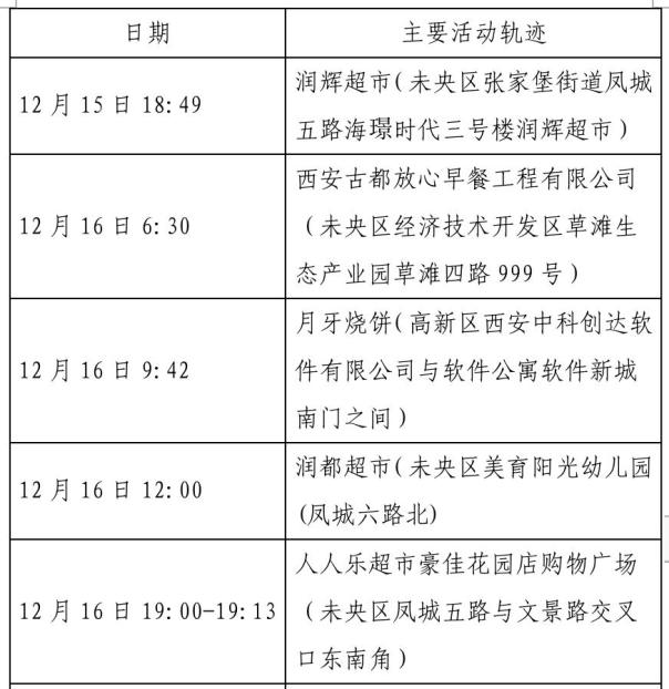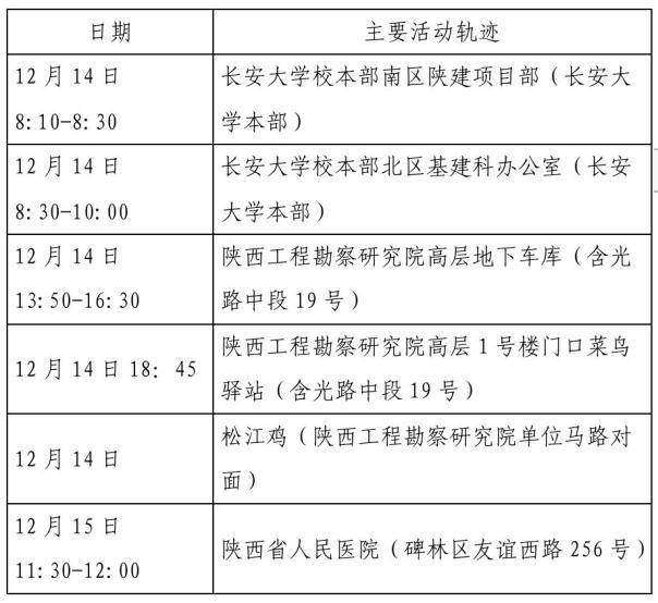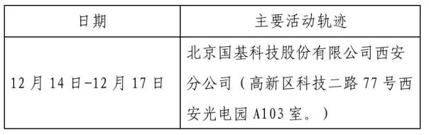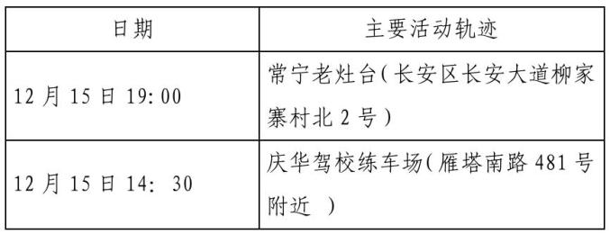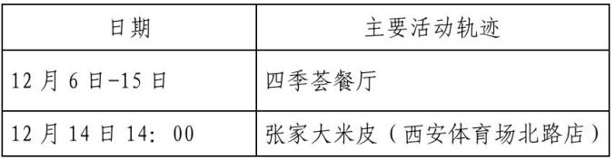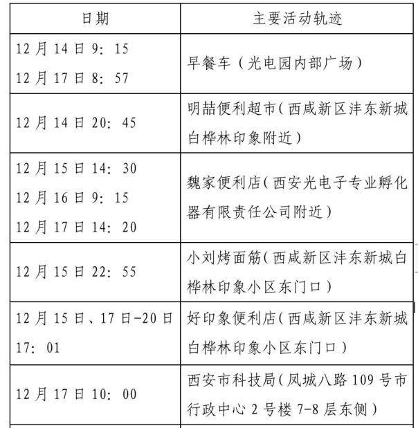 确诊病例15,现居西安市西咸新区,系12月22日发布的确诊病例4的密切接触者。12月20日被集中隔离医学观察,轻型。与12月22日确诊病例4轨迹相同。