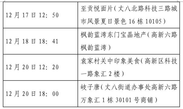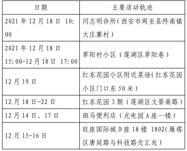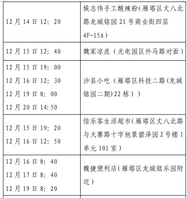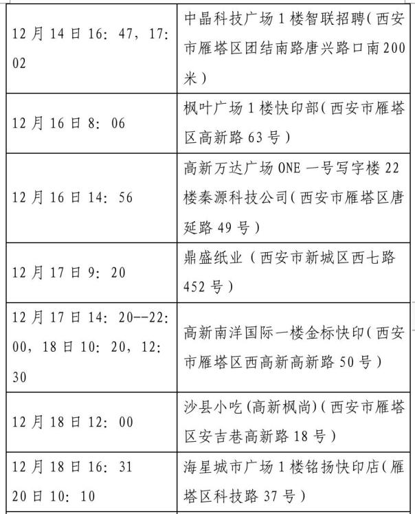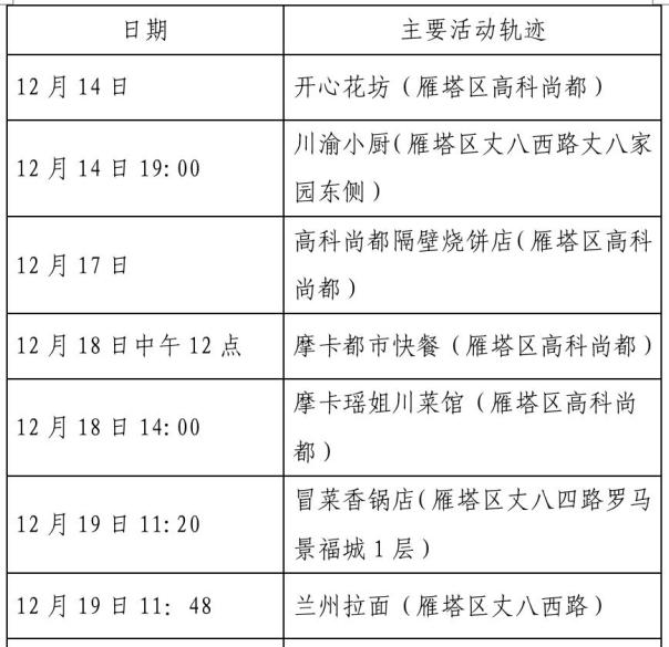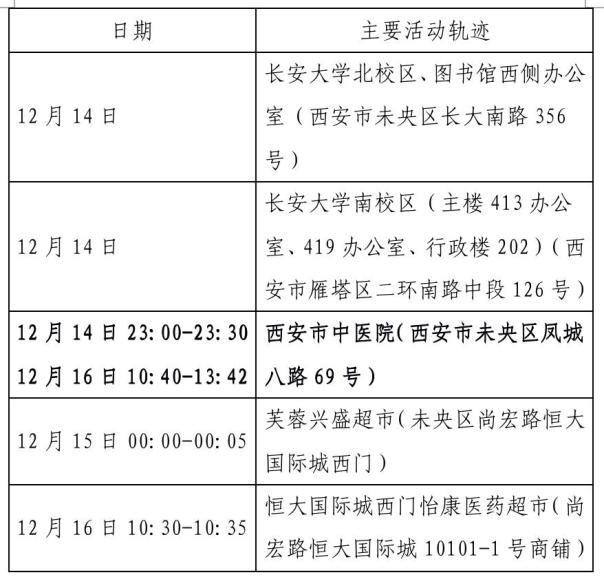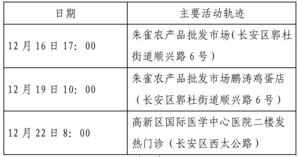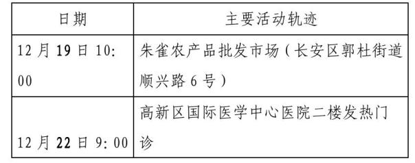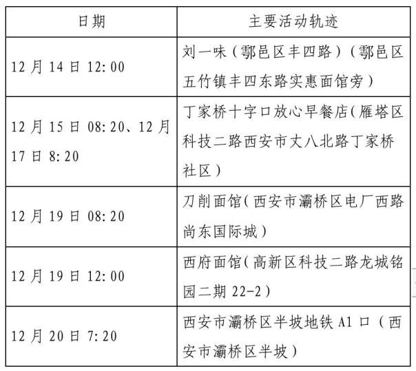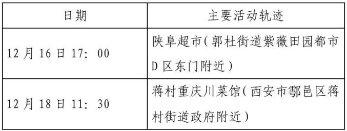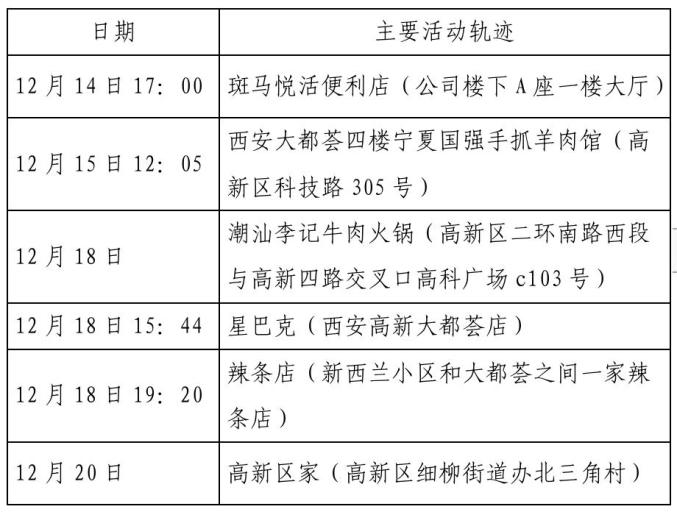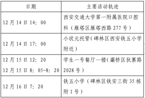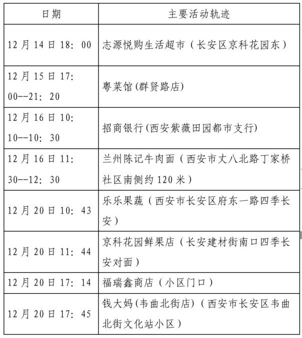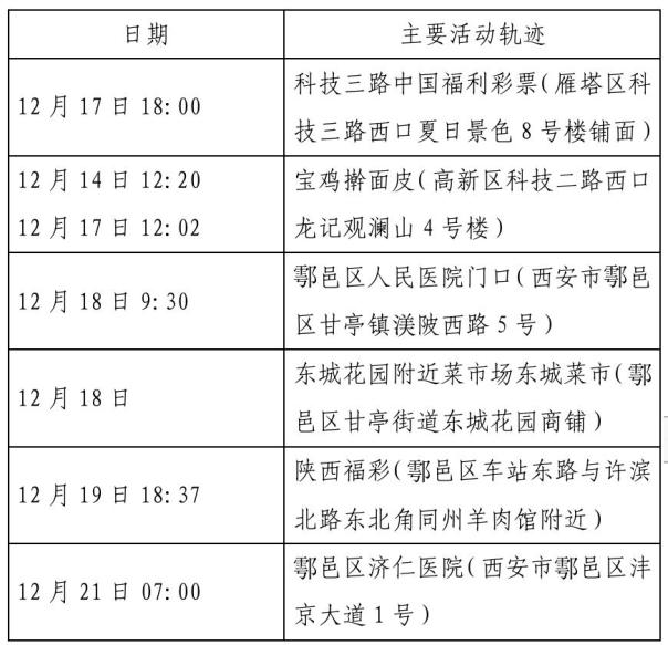 据“西安发布”消息,根据疾控等部门流调情况,现将12月22日0时-23日8时我市部分新增确诊病例的公共场所活动轨迹公布如下: