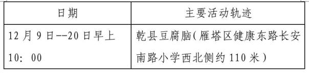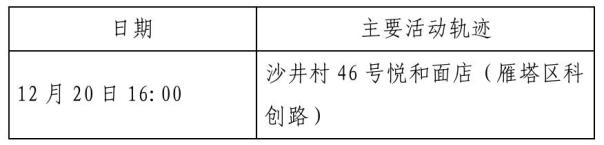 确诊病例82,现居西安市雁塔区。12月20日作为重点人群被集中隔离,轻型。无公共场所轨迹。