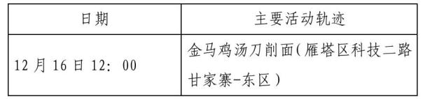 12月16日,11时左右去延安市博爱医院核酸采样后回家,未外出。(核酸检测结果阴性)
