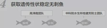 第四步是获取遗传性状稳定无刺鱼。就是要让经过编辑的鱼经过纯化繁殖一代,到第三代就可以获得纯合体的遗侍性状稳定的真正无刺鱼。