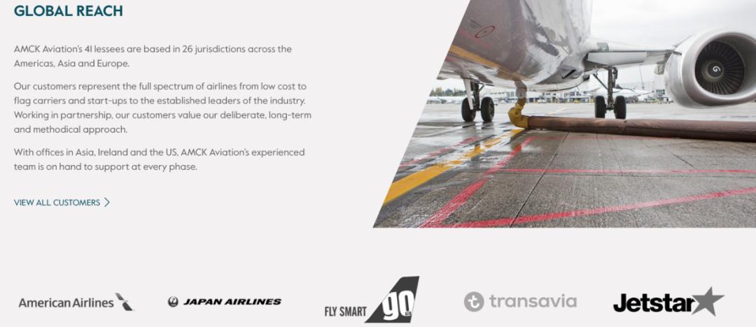 AMCK的业务覆盖亚洲、美洲和欧洲的26个市场,为包括东航、日航、北欧航空等在内的41个航空公司提供租赁服务。