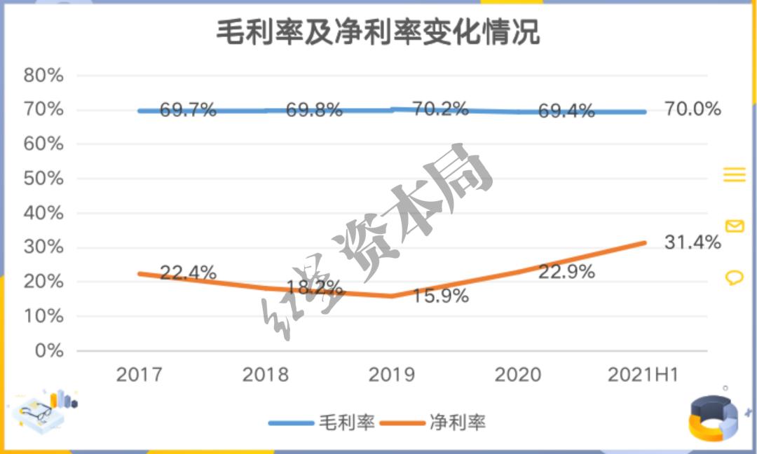 根据招股书,迪阿股份历年毛利率均高达70%左右,属于同行业的较高水平,而行业内的平均毛利率基本在44%~48%之间。