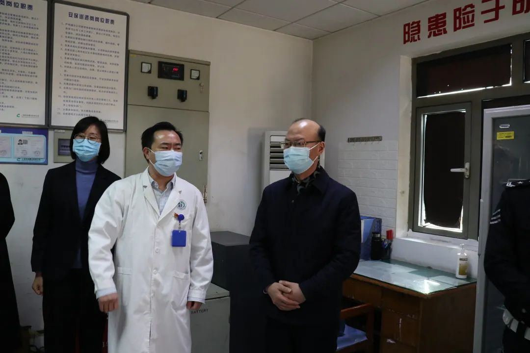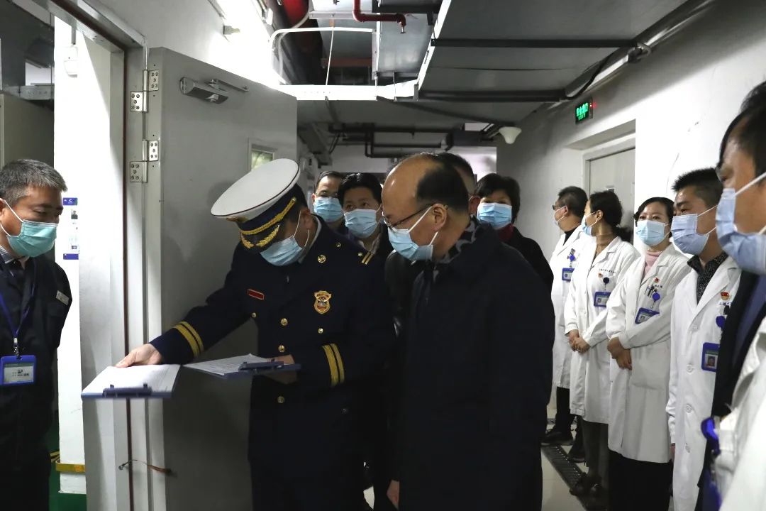 韦明一行分别前往监控室、门诊大厅、微型消防站、配电房和水泵房等安全生产重点区域,详细检查了医院安全生产和疫情防控的关键环节,实地查看消防设施设备、工作台账记录、安全管理措施、安全管理人员配备等情况。