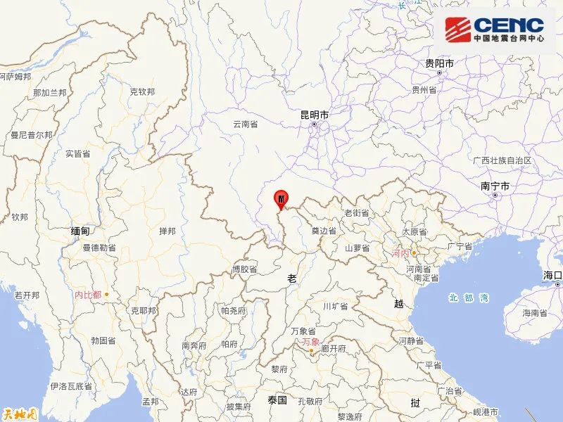 中国地震台网正式测定:12月24日21时43分在老挝(北纬22.33度,东经101.69度)发生6.0级地震,震源深度15千米。震中位于老挝,离我国边境线仅4公里,造成云南震感强烈。