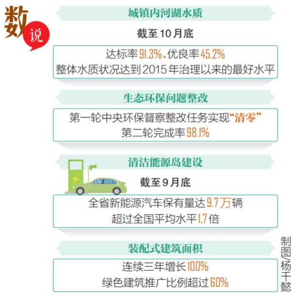 又如,清洁能源岛建设扎实推进,截至9月底全省新能源汽车保有量达9.7万辆,超过全国平均水平1.7倍。我省装配式建筑面积已连续三年增长100%,绿色建筑推广比例超过60%。