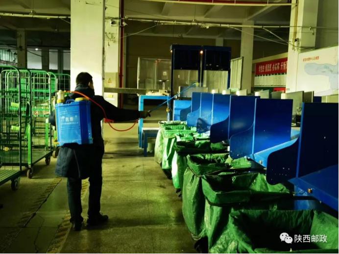陕西邮政邮件处理中心及各揽投部对邮件及生产设备设施进行日常消杀。投递员日常投递佩戴口罩及一次性手套,与客户保持安全距离。对被隔离区域的邮件,投递员均与客户进行电话沟通,邮件暂时存放在指定地点,待隔离期满再行投递。