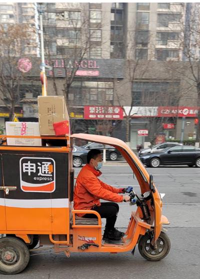 由于大部分地区都受交通管制影响,快递人员及车辆进出的通行证明尚在申请之中。目前,在西安,少数几家分公司的快递小哥仍在冒“疫”奔忙,为居民派件。