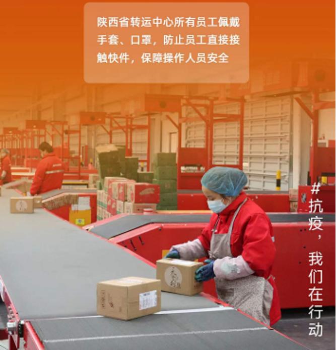 陕西极兔积极落实好快件处理场所、车辆等重点场所的消毒;提严格执行从业人员“扫码进入”“戴口罩”“测体温”“一米线”“勤洗手”“不聚集”等基本健康防护措施。
