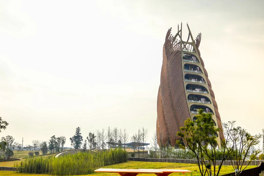 成都新地标熊猫塔:扩建区新增了一处制高点——熊猫塔。熊猫塔高69.8米,共9层。塔形如雨后春笋,楼层空间采用芙蓉花为指引,游客游览至此仿佛置身于繁花盛景之中。熊猫塔是成都新的制高点,可以俯览熊猫基地全貌,是成都新的地标性建筑和网红打卡地,和“339”两两相对,并与金融城双子塔南北相望,形成“南有双子塔、北有熊猫塔”交相辉映、相得益彰的格局。