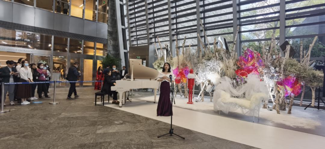 12月24日,上海环球金融中心上演一场经典歌剧音乐会。女高音独唱“我亲爱的爸爸”、《卡门》“我说我什么也不怕”,男高音独唱“告别之歌”, 这也是由陆家嘴金融城《唱响金融城》 活动首次走进上海环球金融中心,让大楼白领和附近的市民与音乐艺术产生了共鸣。
