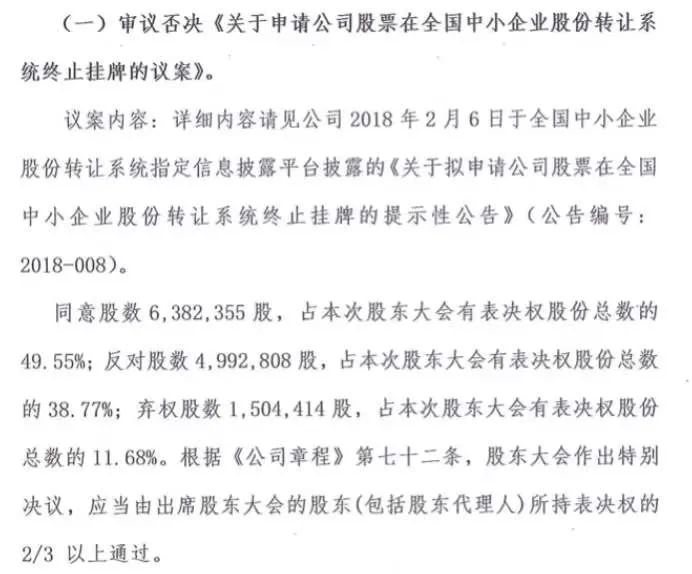 持反对意见的股东认为,终止挂牌对公司的长期战略发展规划弊大于利,终止挂牌后股份也失去流动性,不利于保护中小股东的利益。这也刷新了当时转板普遍获得股东支持的市场认知。