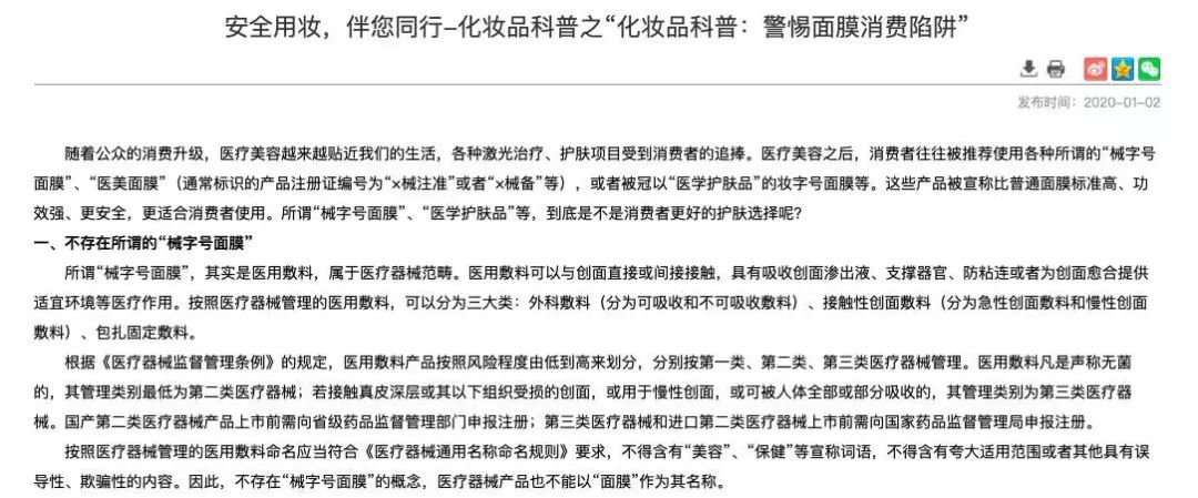 对此,中国整形美容协会医疗美容机构分会副会长田亚华表示,随着医美概念盛行,这两年医用敷料企业业绩应该呈爆发式增长,但也因为市场火热,打着“医美面膜”旗号的产品很多,监管趋严。去年国家药监局发布文件,明确指出“不存在‘械字号面膜’的概念,医疗器械产品也不能以‘面膜’作为其名称”,这对医用敷料行业来说是当头一棒。因此企业在近两年报表也没有先前漂亮。