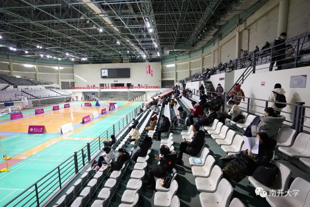 25日,天津气温较低并伴有阵风,为给考生提供一个较为舒适的临时休息空间,南开大学将八里台校区、津南校区的体育馆开放。中午时分,考生走进体育馆,扑面的暖风一扫身上的寒气,大家稍事休息,安静准备后面的考试。