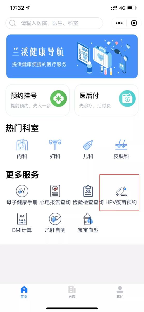 进入健康兰溪小程序,点击HPV疫苗预约