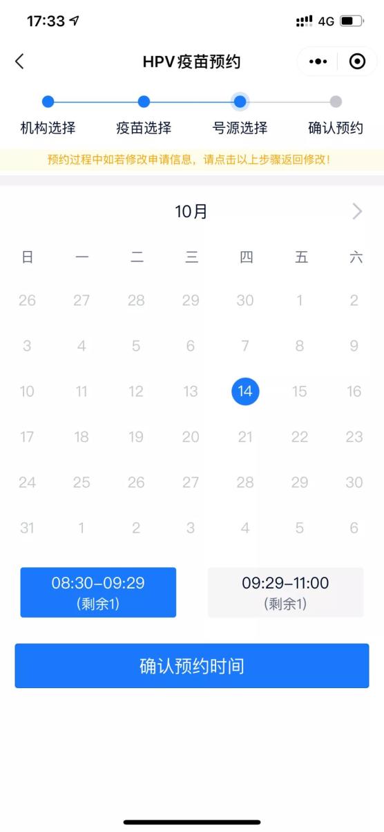 按需选择接种时间,并确认预约