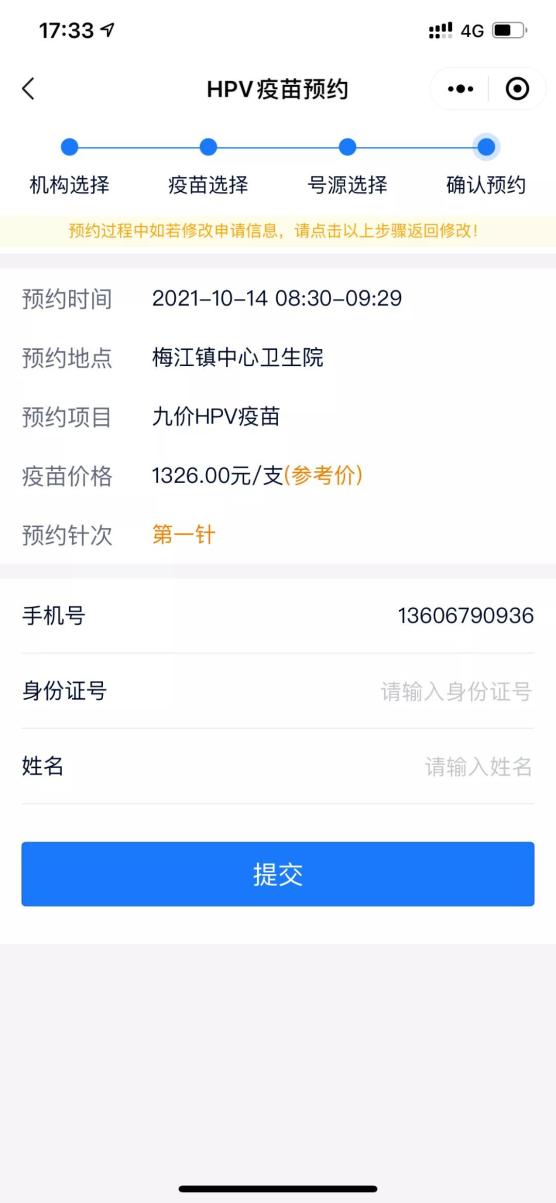 确认疫苗信息及个人信息,确认提交