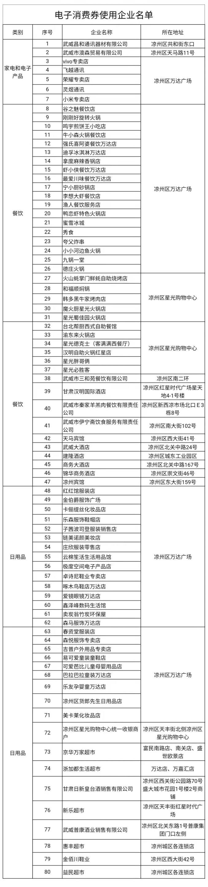 附:电子消费券使用企业名单