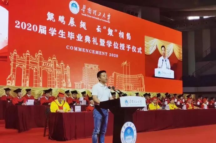 在华南理工大学2020届毕业典礼上,何小鹏作为优秀校友代表,和学弟学妹们分享了大学里自己最难忘的三件事——“学习”“同学”和“折腾”。当天他还在自己的微博中写道:“再回华南理工大学,真的被那种青葱、那种回忆、那种开心,激动得热泪盈眶。”